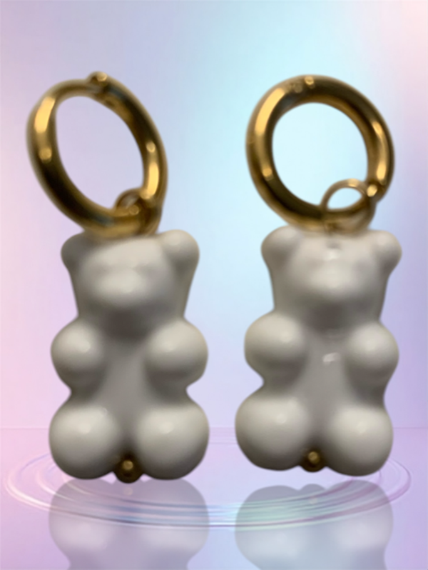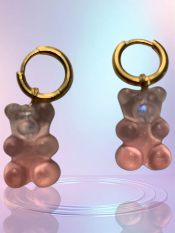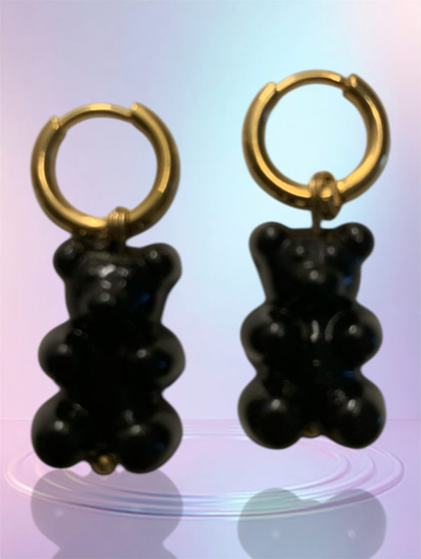 MINI CREOLES EN ACIER INOXYDABLE DORE ET OURSONS EN RESINE EPOXY