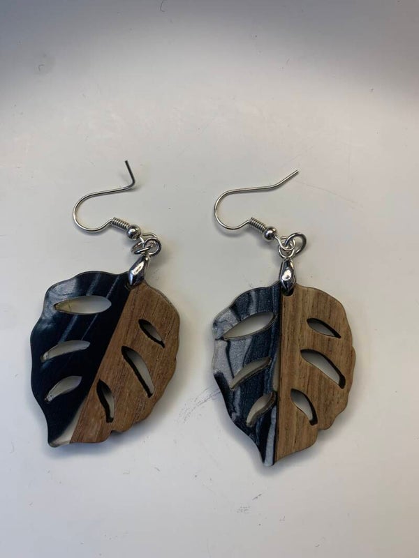 boucles d'oreilles en résine époxy et bois chaque modèle est unique. attache en acier inoxydable doré ou argenté pour plaire à chaque team.